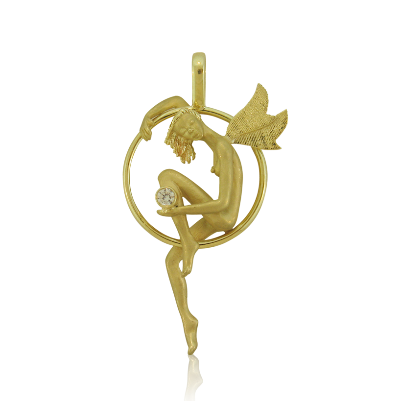 Esta delicada joya representa a la Hada de la ArmonÃa, sÃmbolo de equilibrio interior, paz y energÃa positiva. Finamente elaborada en oro de 14 quilates y decorada con una brillante zirconia, es ideal para quienes buscan una joya con belleza y significado. Perfecta como talismán personal o regalo lleno de intención.